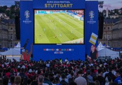 Binlerce futbolsever, EURO 2024'ün ikinci gününde yapılan maçları Stuttgart'taki Schlossplatz'ta seyretti. Taraftarlar takımlarının ataklarında büyük heyecan yaşarken, atılan golleri coşkuyla kutladı.