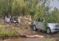 Lefkoşa’da kısa süreli yağış: Ağaç dalları park halindeki araçların üzerine düştü