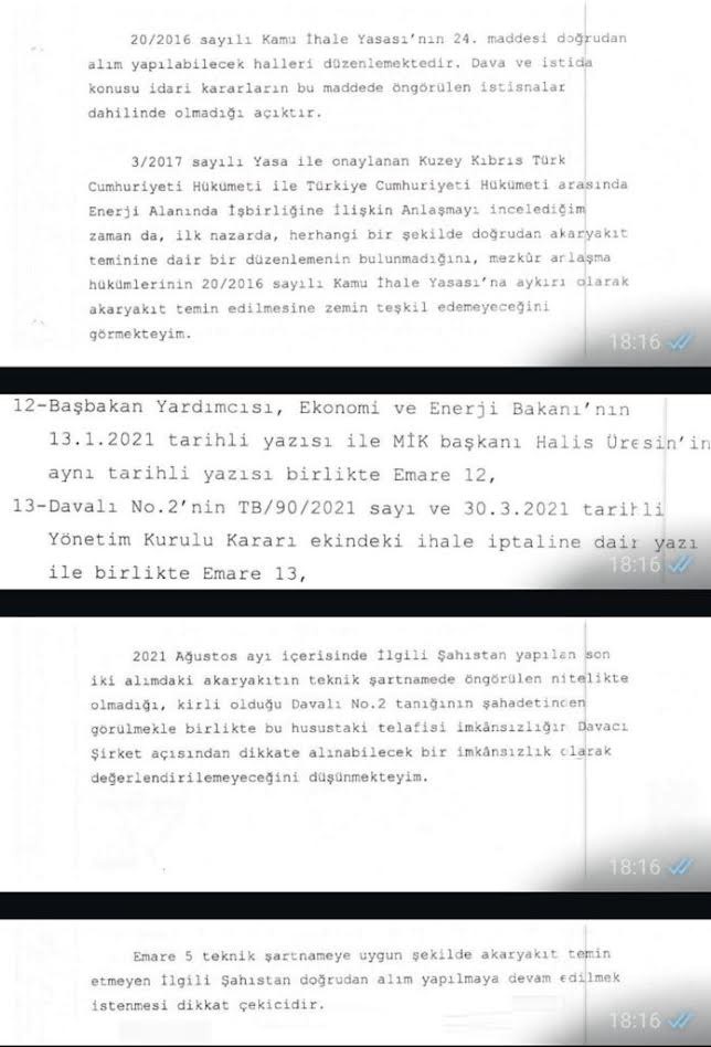 -Kıbrıs Türk Elektrik Kurumu’nun, TPIC’ten ihalesiz ve yasadışı bir şekilde direkt alım yaptığı yakıtın kirli olduğu, Yüksek İdari Mahkemesi’nin 8 Eylül tarihindeki 79/2021 sayılı kararınca ispatlanmıştır. YİM’in bu kararı doğrultusunda KIB-TEK’in ihalesiz ve doğrudan yakıt alımı da durdurulmuştur. Aynı zamanda KIB-TEK Müdür Muavinlerinden Kamil Direl de mahkemede yakıtın kirli olduğunu itiraf etmiştir.