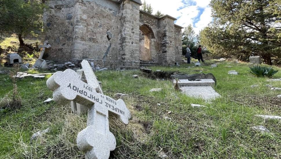 Mezarlıkta çok sayıda mezarın yıkıldığı, mezar taşlarının ise kırık hâlde olduğu gözlemlendi.