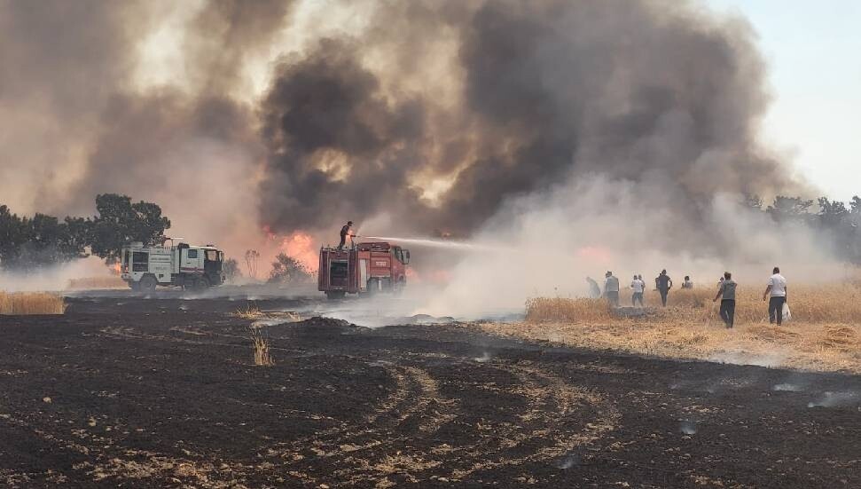 Çınarlı köyünün güneydoğusunda dün çıkan yangında kızılçam, selvi, zeytin, harnup ağaçları, biçilmemiş arpa, buğday ile balya ve anızlar yandı.