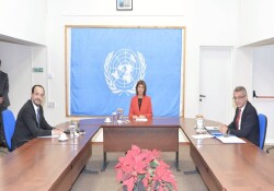 “Bugün, Kıbrıslı Türk Lider Sayın Tufan Erhürman ile Kıbrıslı Rum Lider Sayın Nikos Hristodulidis, Birleşmiş Milletler Genel Sekreteri’nin Kişisel Temsilcisi Sayın María Angela Holguín Cuéllar’ın aracılığıyla, Birleşmiş Milletler İyi Niyet Misyonu yerleşkesinde bir toplantı gerçekleştirdiler.
