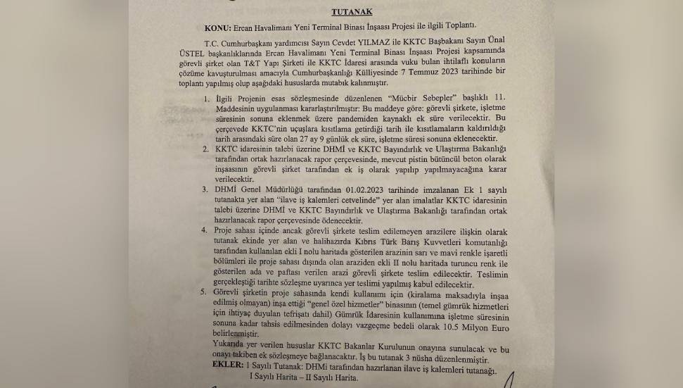 Ercan Havalimanı’na ilişkin sözleşmeye değinen Talat, ek sözleşme kapsamında yapılan düzenlemelerin Sayıştay tarafından ayrıntılı biçimde incelendiğini belirtti.