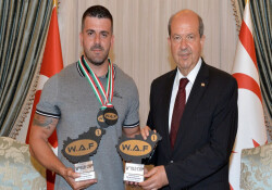 Macaristan’da düzenlenen W.A.F UNIVERSE Vücut Geliştirme ve Fitness Dünya Şampiyonası’nda KKTC’yi başarıyla temsil ederek, iki dalda dünya şampiyonu olan Salahi Avcı, İskele Belediye Başkanı Hasan Sadıkoğlu’nu ziyaret ederek kendisine gösterilen destekten dolayı teşekkür etti.