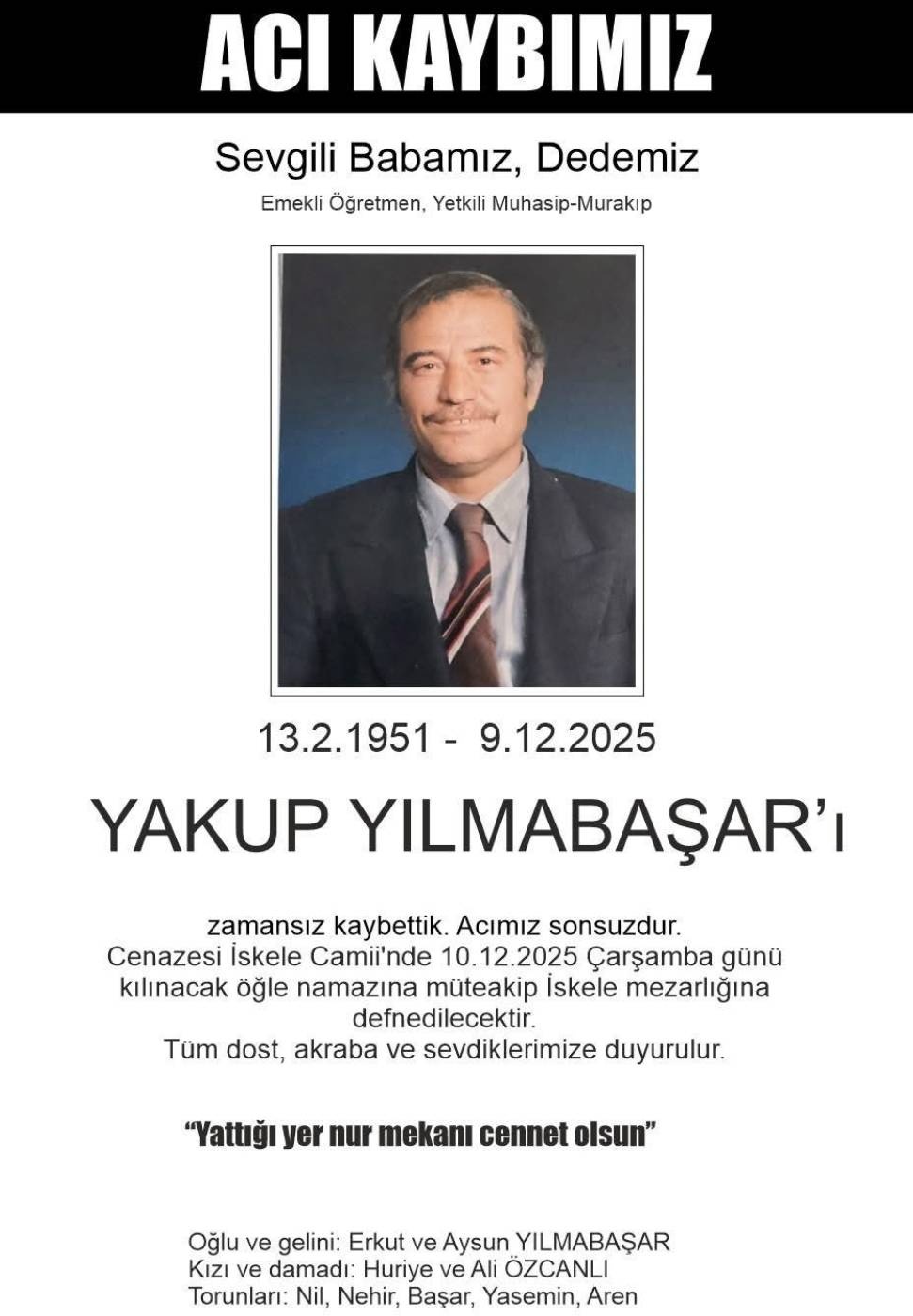 İskele sakini emekli Öğretmen Yakup Yılmabaşar yaşamını yitirdi.