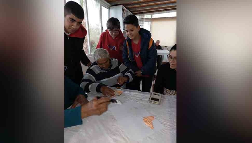 Yaşlılarla birlikte kitap okuyan öğrenciler, mani atışması ve ahşap boyama etkinlikleriyle keyifli bir vakit geçirdi.