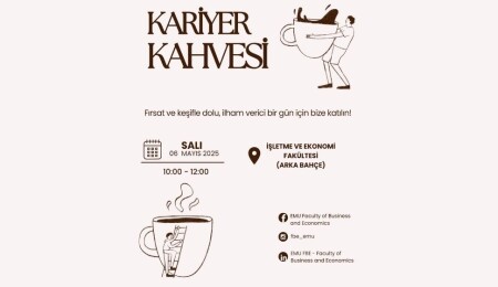 Doğu Akdeniz Üniversitesi (DAÜ) İşletme ve Ekonomi Fakültesi tarafından “6. Kariyer Kahvesi” etkinliği düzenleniyor. Söz konusu etkinlik, 6 Mayıs 2025 Salı günü, 10:00 – 12:00 saatleri arasında DAÜ İşletme ve Ekonomi Fakültesi bahçesinde gerçekleştirilecek.